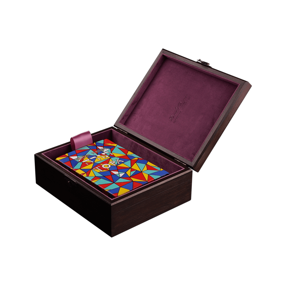 הכריכה עשויה עור איטלקי איכותי, והאיורים על גבי הספר מצוירים בעבודת יד בצבעי אקריליק, תוך הקפדה על כל פרט ופרט.