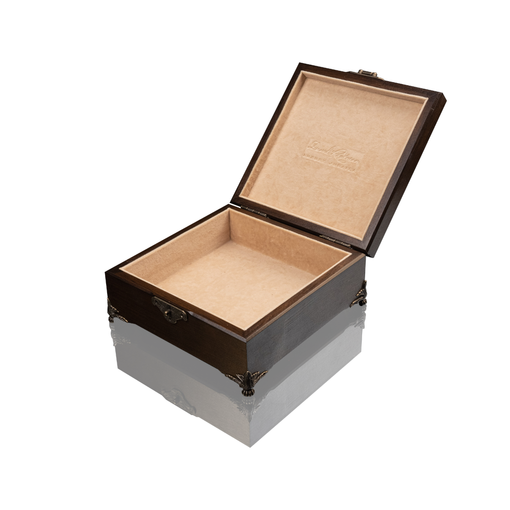 The product is packaged in a signature David Roytman wooden box, upholstered on the inside with beige velvet.