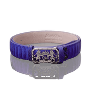 A strict classic belt is made of genuine python leather. The buckle is cast from a composition of copper, nickel and zinc, which is called “new silver”. On top is a layer of glossy black enamel and the silhouette of the Lions of Jerusalem.