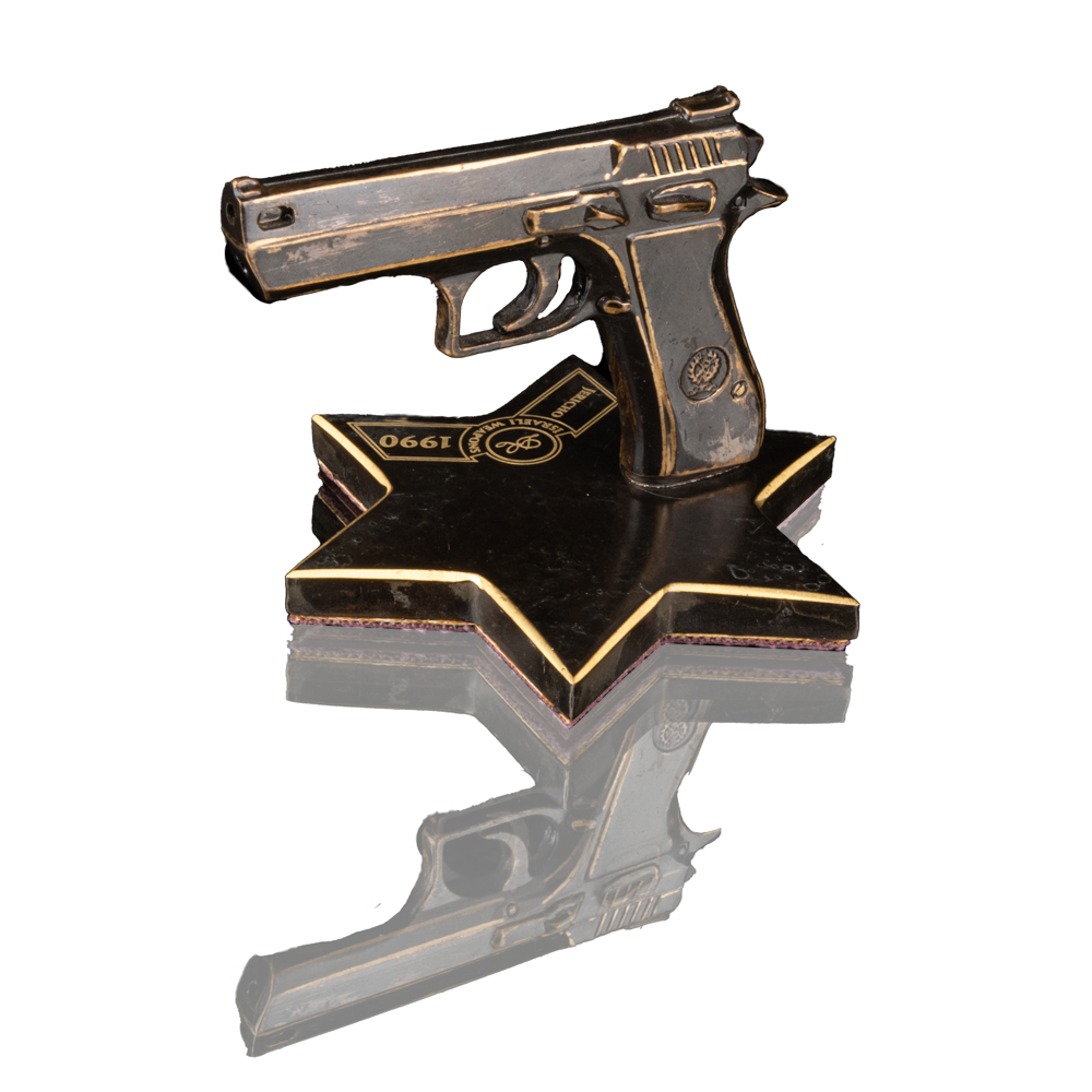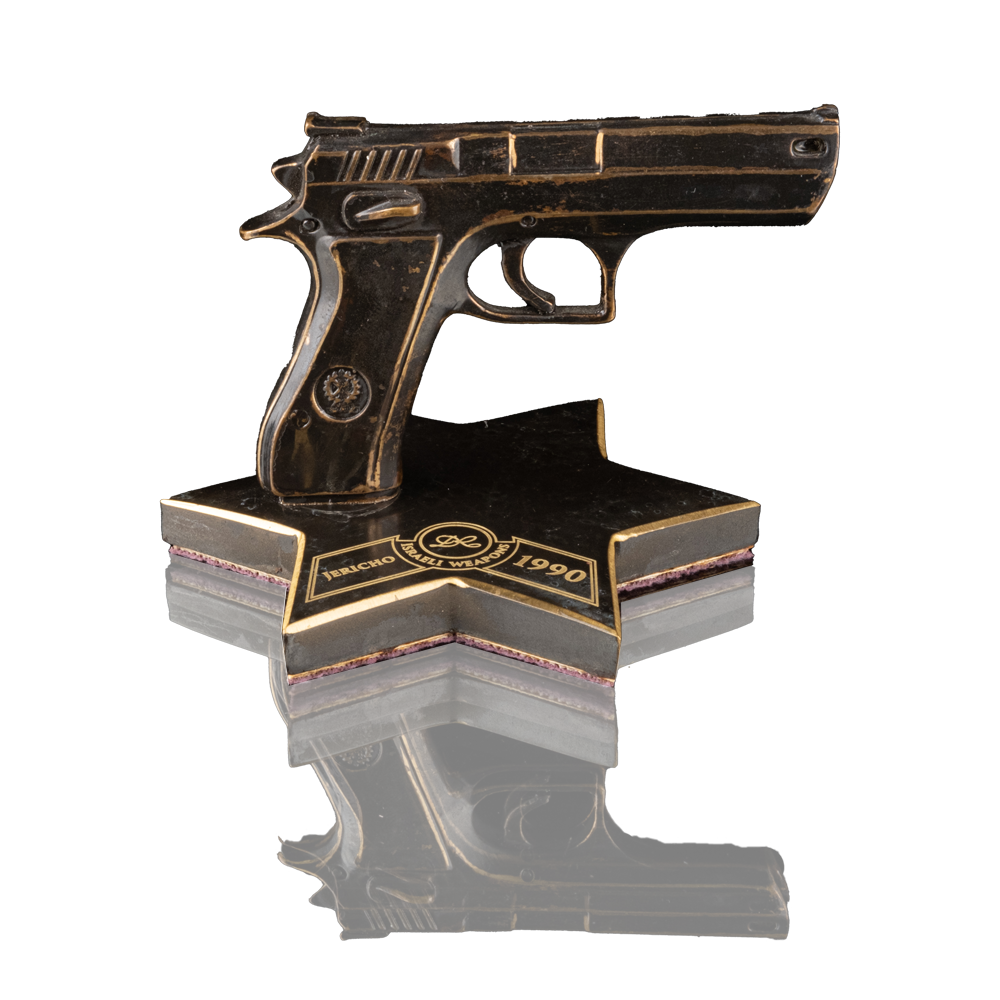 The Jericho 1990 bronze model from the design house of David Roytman Luxury Judaica presents a magnificent model of this historic weapon. The Jericho 1990 is an Israeli pistol designed in the early 1990s that has been widely recognised for its reliability and accuracy.
