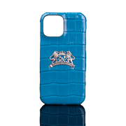 David Roytman Luxury Judaica brings you the exclusive Crocodile Leather Case for iPhone 16 Pro max in blue with lion nameplate, the epitome of luxury, style, and elegance.