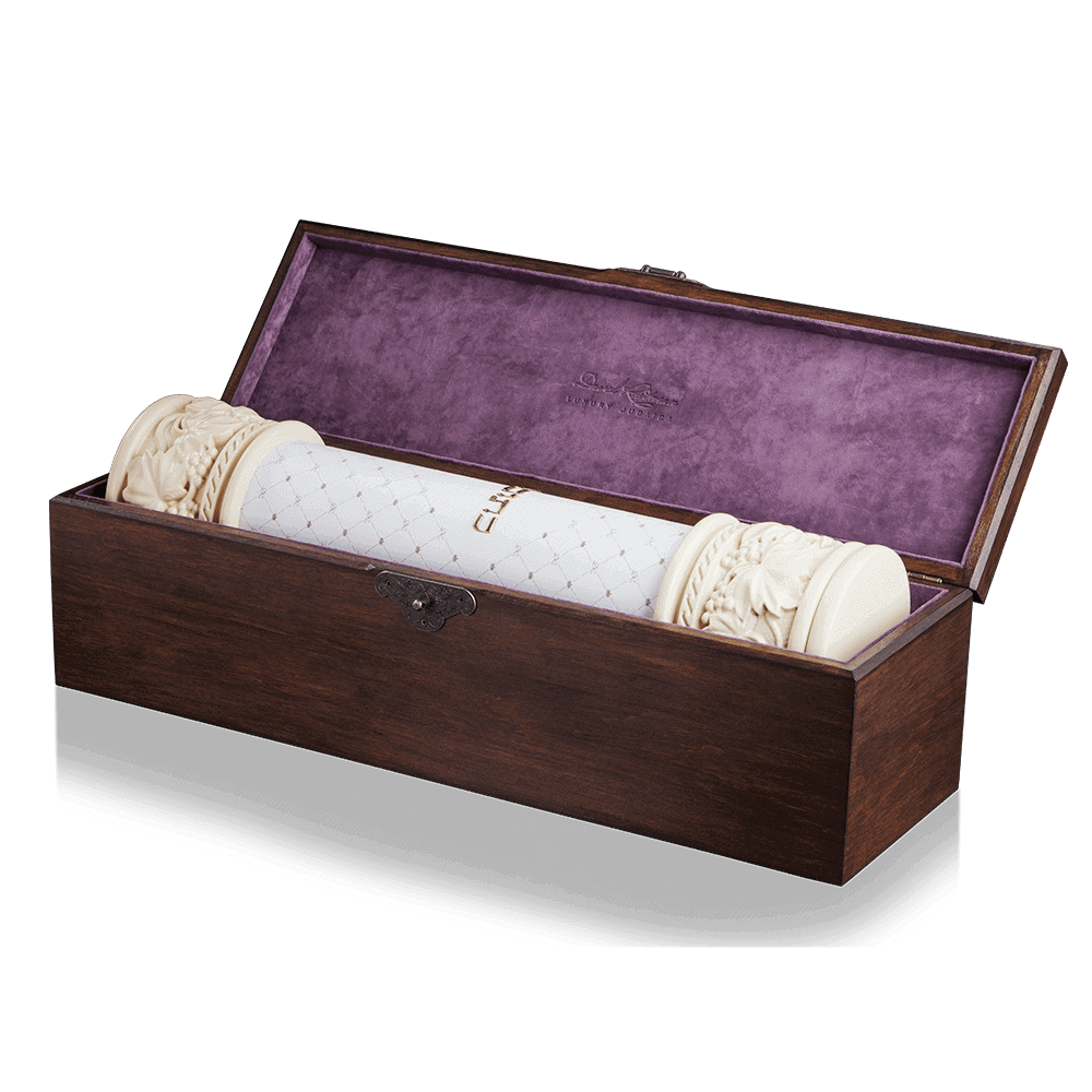 The pure white color will remind you of the special wedding day. And David Roytman's signature wooden case with velvet inner lining will keep those memories safe and secure.
