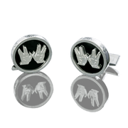 Cuff links are a small but very significant detail of a men's business wardrobe. With cuff links from the design house David Roytman Luxury Judaica, you will not defiantly, but confidently emphasize your respect for Jewish culture. The cuff links are handmade from silver. The central part is made of natural onyx. The brand logo is laser engraved on the sides of the product. The classic clasp securely secures the cuff links to the cuffs.