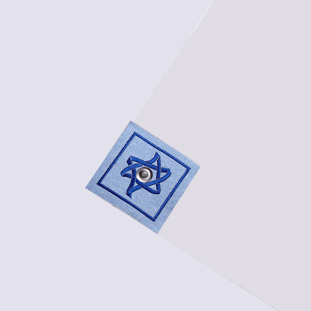 Талит выполнен из натуральной шерстяной ткани. В углу изделия расположена чёрная джинсовая вставка для цицит с орнаментом и изогнутой Звездой Давида, эксклюзивный дизайн которой разработан David Roytman. Тиснение выполнено методом лазерной гравировки, а цицит сплетены мастерами вручную из натуральной нити.